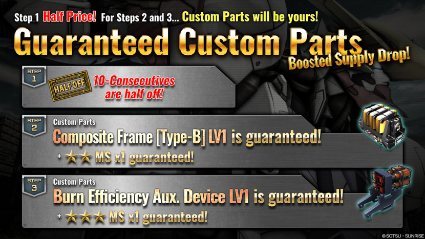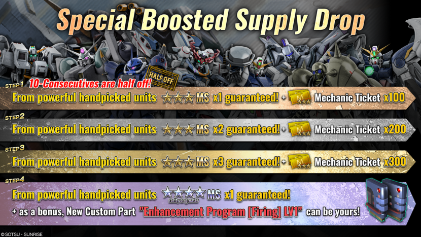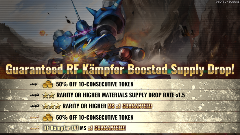 - ・STEP3(30 Tokens):1 out of 4 distinctively selected powerful! MS guaranteed! Plus “Superb Jegan LV1” MS x1 guaranteed!!