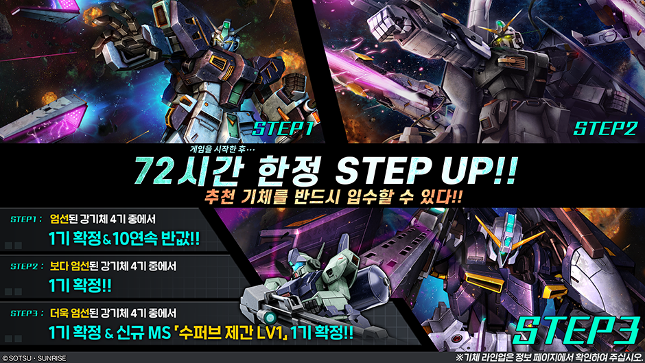 - ・STEP1(30토큰):11 번째로 Pick up MS가 1 기 확정! + 추첨 물자는 전부 ★★이상 희소도!