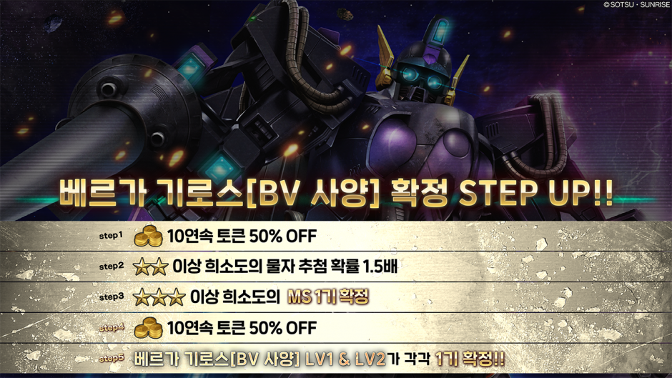 - ・STEP5(30토큰):베르가 기로스[BV 사양] LV1 & LV2 가 각각 1기 확정!