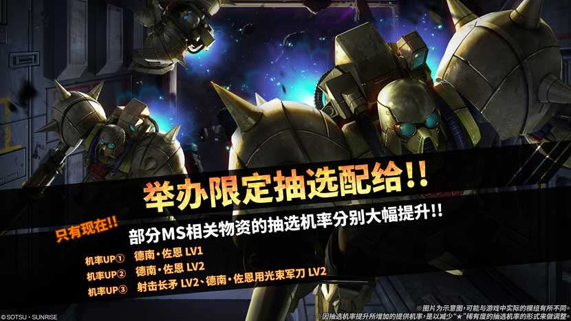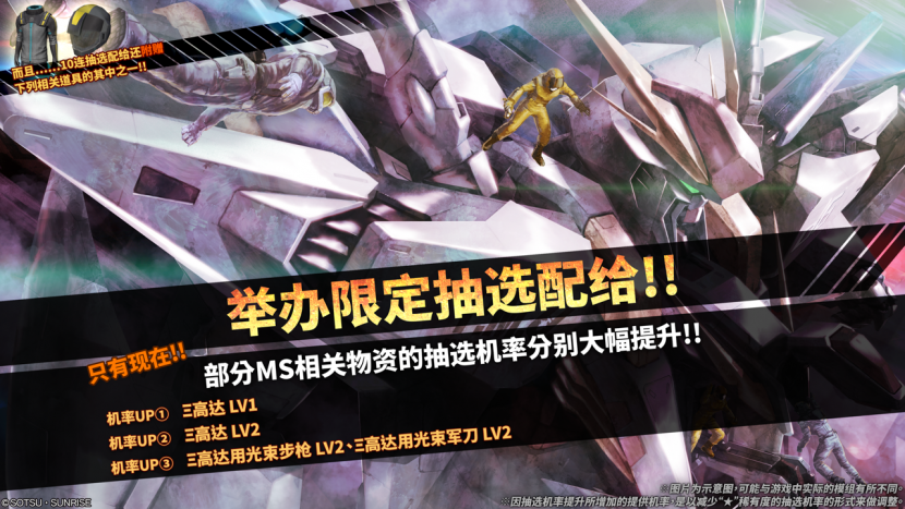上图新MS已更新至游戏中,新抽选配给一览请见下方列表。