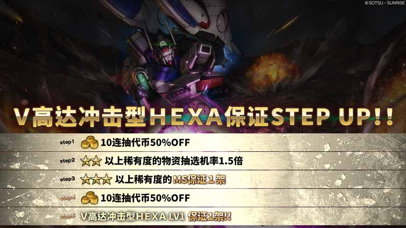 - ・STEP5(30枚代币):V高达冲击型HEXALV1保证1架!!